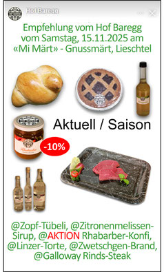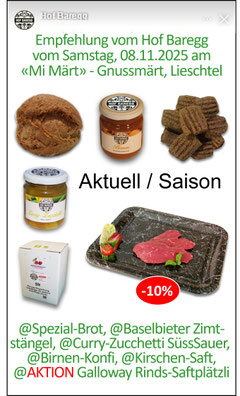 im Hof-Laden auf dem schönen Hof Baregg oder am GenussMarkt in