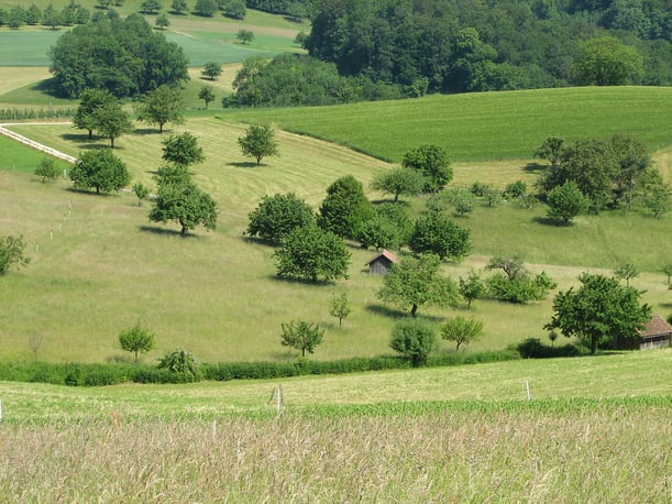 Da uns Hochstamm-Obstbäume und die Natur schon immer sehr wichtig waren, haben wir mit der Pflanzung von zusätzlichen Hochstamm-Obstbäumen, Hecken, Aussaaten von Buntbrachen und Blumenwiesen mit Salbei etc. einen grossen Teil unserer Fläche auf «Extensive Nutzung» umgestellt.